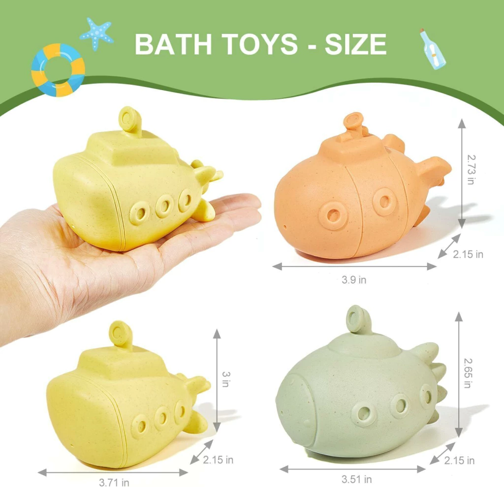 - Tamaño ideal para manos pequeñas: Cada submarino tiene un tamaño perfecto para que bebés los agarren cómodamente, estimulando su motricidad fina durante el juego en la bañera.