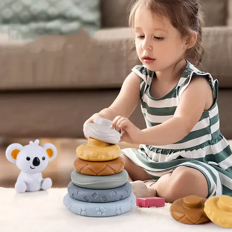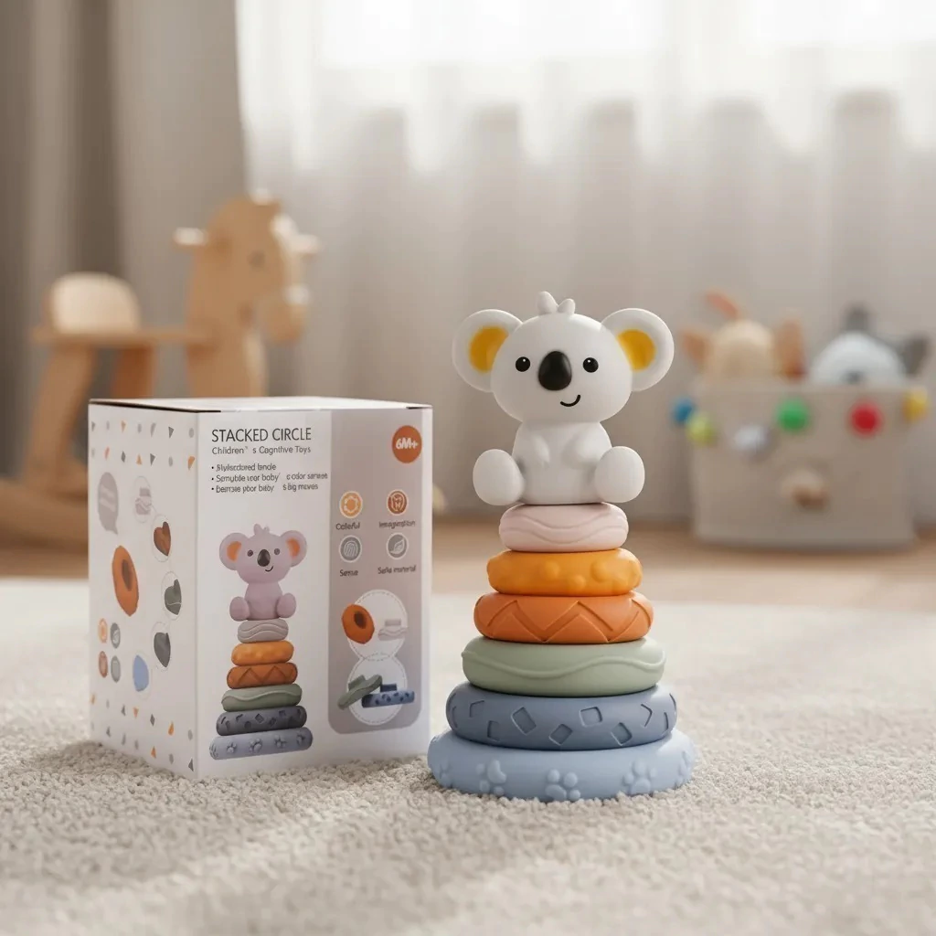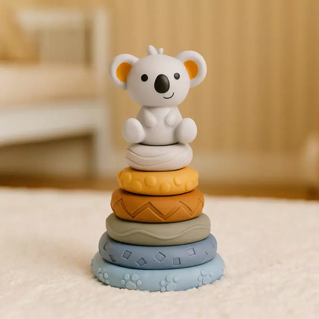 Torre Didáctica Aros Apilables de Silicona - 7 Piezas - Koala (+ 6 Meses)