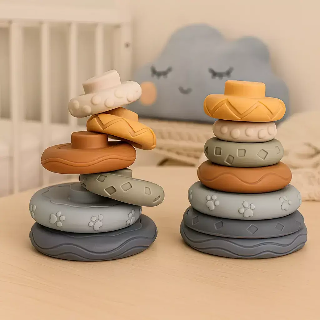 Este juego de encastre y apilables es un excelente aliado para el crecimiento cognitivo y sensorial. A través del juego, tu bebé potenciará su capacidad de resolver problemas mientras explora texturas y colores. Además, el material de silicona es fácil de limpiar, manteniendo su higiene y seguridad en todo momento.