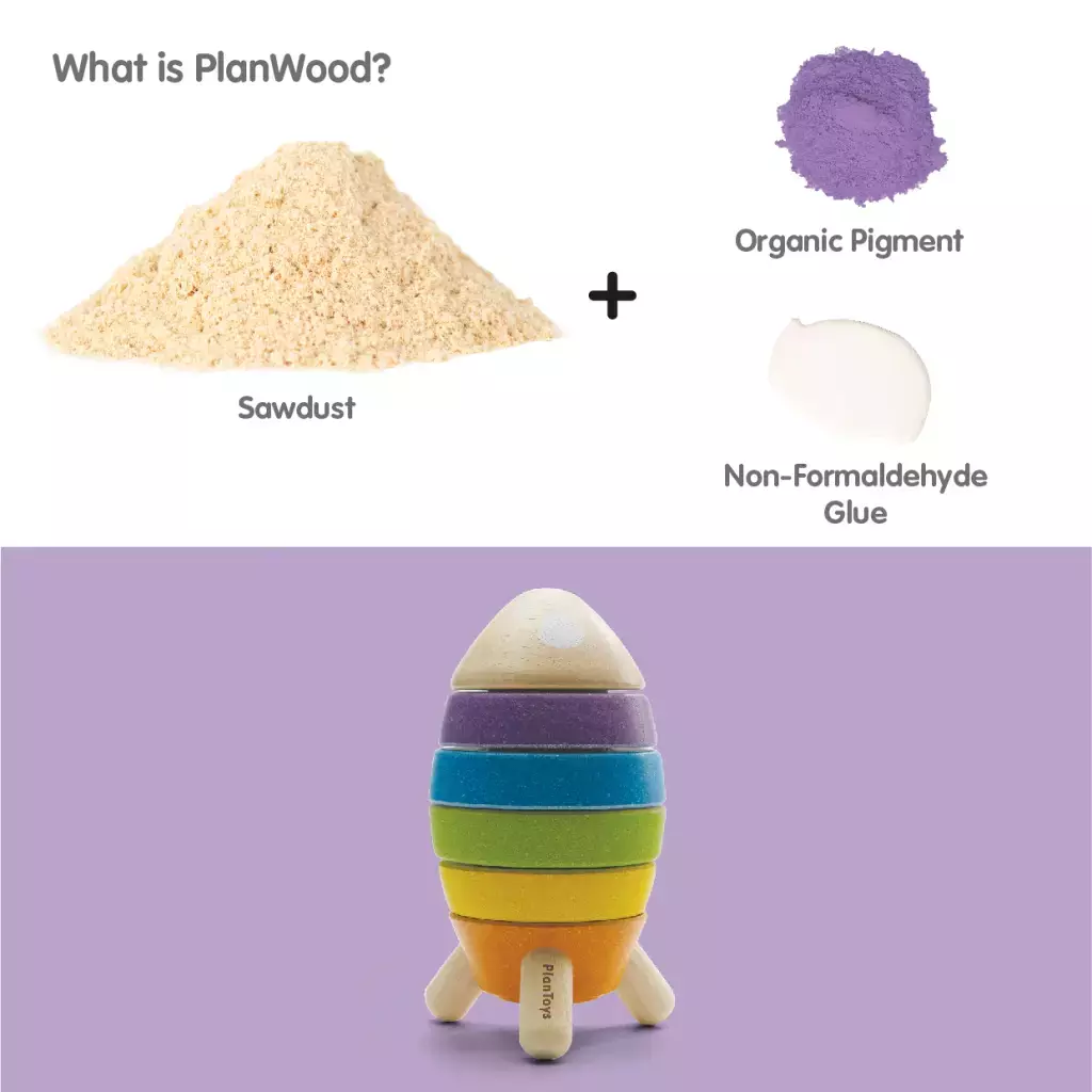 Comprometidos con el cuidado del planeta, este cohete está fabricado de forma sostenible en Tailandia, utilizando madera de caucho libre de químicos, pegamento sin formaldehído, pigmentos orgánicos y tintes a base de agua, garantizando un producto seguro y ecológico.